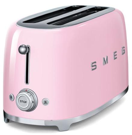Тостер на 4 ломтика, Цвет розовый; Функции: подогрев, размораживание, багель; 6 уровней поджаривания; Съемный поддон для крошек.